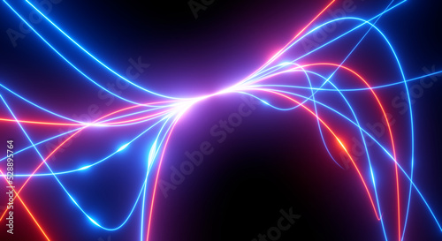 Abstract background. Beautiful colored lines. Magic sparks. Neon swirls. Glow effect. High tech. Sci Fi technology art.