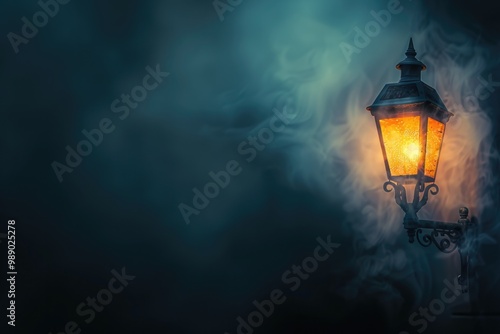 Abstract Background Dark. Gradient Night Sky with Lantern Light and Mist