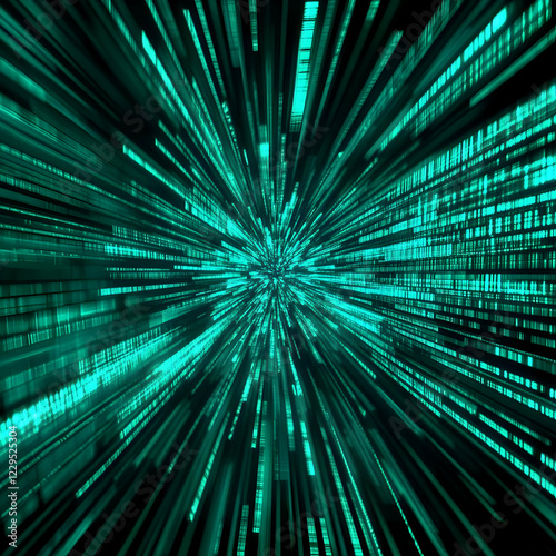 Abstract Background Displays Flowing Green Data Stream Rapidly Expanding Outward from Center