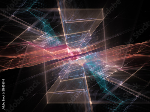 Abstract background element. Fractal graphics 3d illustration. Symmetric composition of repeating grids. Information technology concept. Multicolor on black.