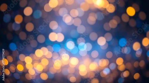 abstract background featuring glittering lights in vibrant blue and gold shades, scattered against a dark black gradient.