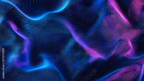 abstract background featuring glowing blue waves with soft pink highlights creating a vibrant, dynamic visual effect