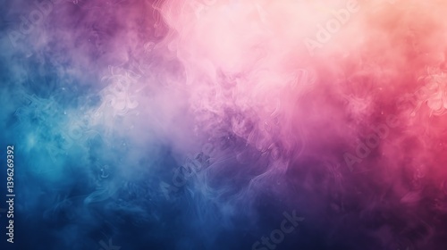 Abstract background featuring soft, ethereal clouds or smoke texture blending vibrant blue, pink, and purple hues with a luminous center. Atmospheric gradient effect.