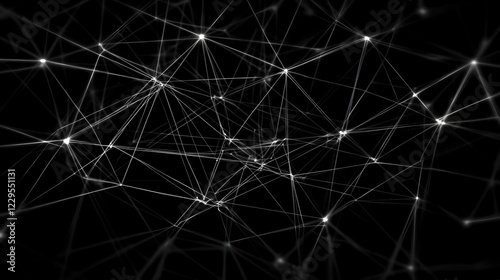 Abstract Background Forms Network Connection with Glowing Lines and Dots on Black Background.
