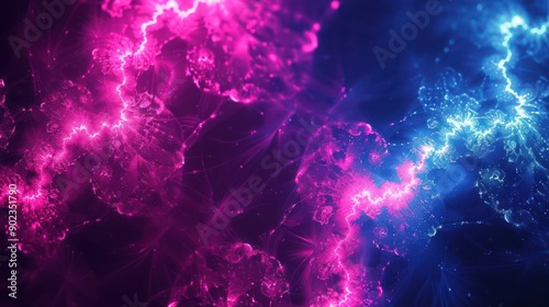 Abstract Background, fractal shapes highlighted in bold contrasts of neon pink and royal blue
