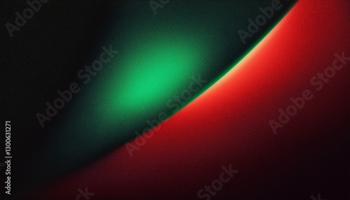 Abstract background grainy green red glowing color shape, black backdrop noisy texture dark banner poster design