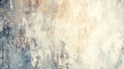Abstract background modern minimalist painting with brush strokes in grey and beige on aged stone surface plaster wall design