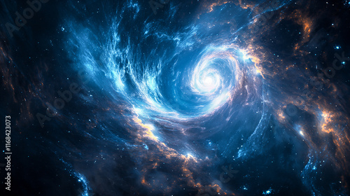 Abstract Background of a Beautiful Glowing Blue Supernova Galaxy in Deep Space. Generative AI