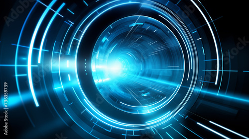 Abstract background of advanced technology navy and cyan circle, portal or pathway with futuristic modern digital technological design