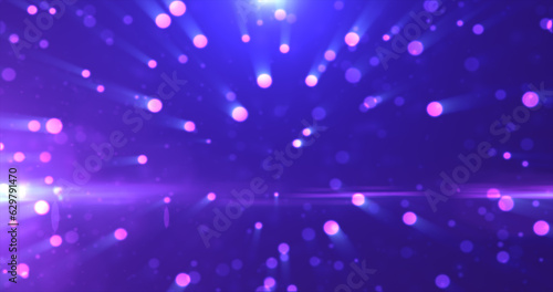 Abstract background of blue glowing particles and bokeh dots of festive energy magic