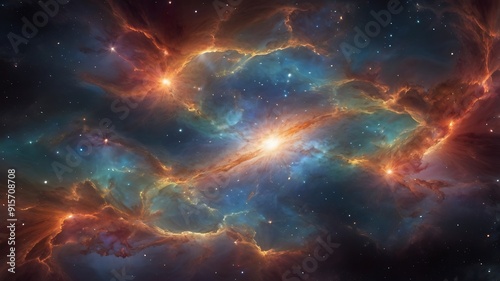 Abstract background of fantasy space landscape with colorful design, contains nebulas, stars and planets in random placement