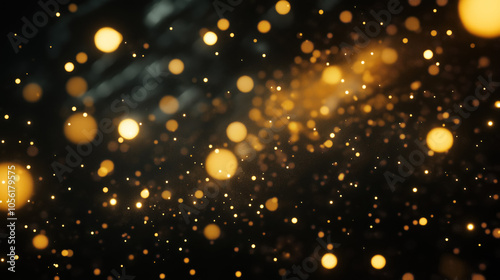 abstract background of golden bokeh lights, perfect for festive and holiday celebrations, with a dark ambiance