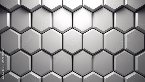 Abstract Background of Interlocking Hexagons in Shades of Gray with Subtle Light and Shadow Play Creating a Modern and Geometric Design
