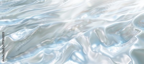Abstract Background Of Smooth, Flowing White And Blue Satin Fabric, Elegant And Luxurious Texture