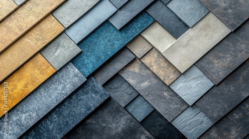 Abstract Background of Stacked Stone Tiles in Various Colors and Textures