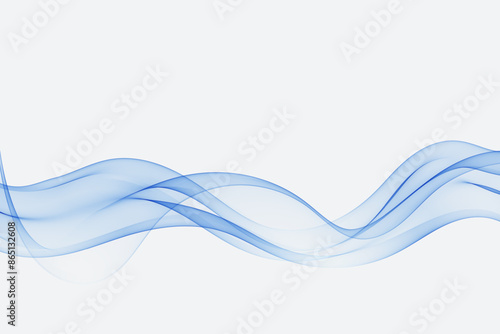 Abstract background of transparent wave flow, blue lines, blue smoke curve.