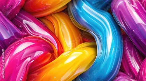 Abstract background of vibrant, interwoven, glossy paint strokes in a rainbow of colors.