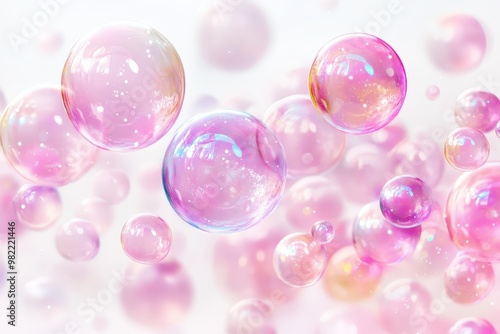 Abstract Background- render of opal bubbles floating on blue sky. Beautiful simple AI generated image