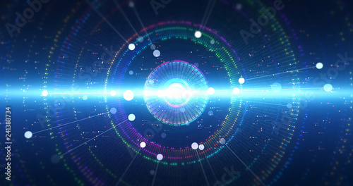Abstract Background Render With Flying Shapes And Numbers - Technology Related Concept