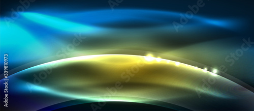 Abstract background. Shiny design neon waves with light effects, techno trendy design. Vector Illustration For Wallpaper, Banner, Background, Card, Book Illustration, landing page
