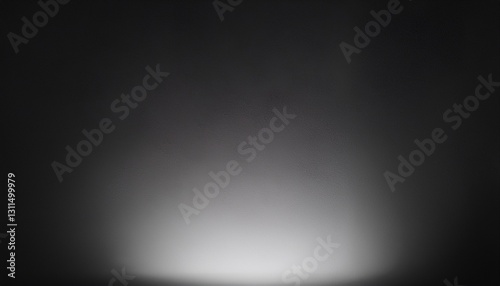 Abstract background. Soft Black Charcoal Gradient BG. Bright focused light spot. Bottom center light spot black to charcoal gradient. Dramatic & modern backdrop.