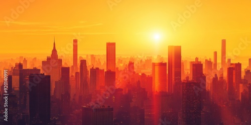 Abstract background. Sunset cityscape with a warm orange glow over skyscrapers and urban landscape. Captures the essence of urban life and evening tranquility.