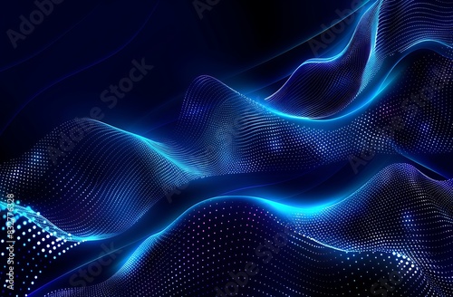Abstract background with a blue gradient of dots and wavy lines, a vector illustration
