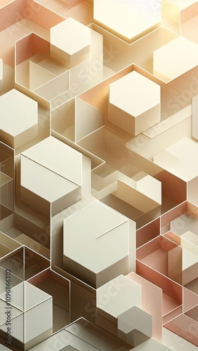 Abstract background with beige geometric shapes and fine lines in a minimalistic design