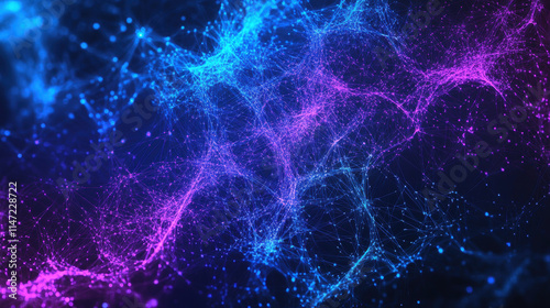 Abstract background with blue and purple glowing connections on a dark space, a technology concept for digital network connection