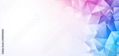 Abstract background with blue and purple triangles, white space in the center, geometric shapes of glass or crystal, light effect