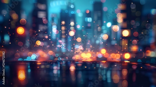 Abstract background with blurred city lights, creating the atmosphere of a night metropolis, suitable for advertising nightclubs, city events or romantic evenings.