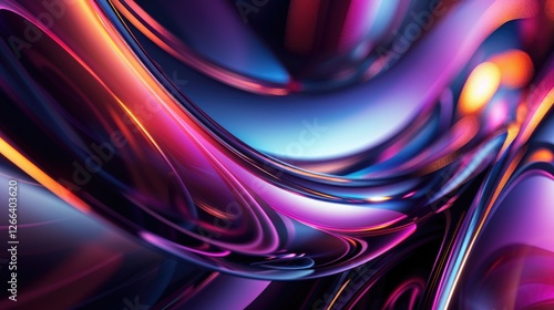Abstract background with colorful shapes and blurred edges, dark colors, futuristic design, light reflection on the surface of metal materia