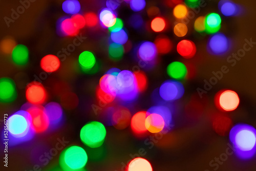 Abstract background with colorful sparkling bokeh on a dark background. Holiday concept