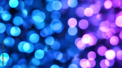 Abstract background with cool toned blur bokeh lights in shades of blue and purple fading into a soft haze