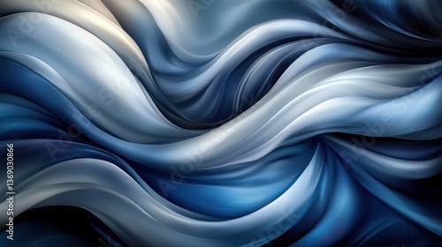 Abstract background with dark blue and gray tones, featuring flowing shapes of fabric or waves