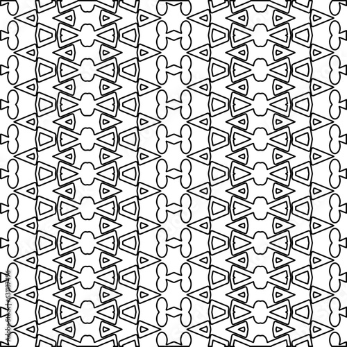 Abstract background with figures from lines. black and white pattern for web page, textures, card, poster, fabric, textile. Monochrome graphic repeating design.