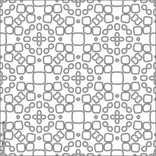 Abstract background with figures from lines. black and white pattern for web page, textures, card, poster, fabric, textile. Monochrome graphic repeating design.