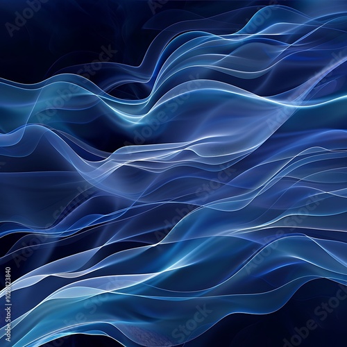 Abstract background with flowing blue light waves, creating a serene and modern design, Mesmerizing Computer-Generated Water Ripples, abstract dark background with blue smoke,