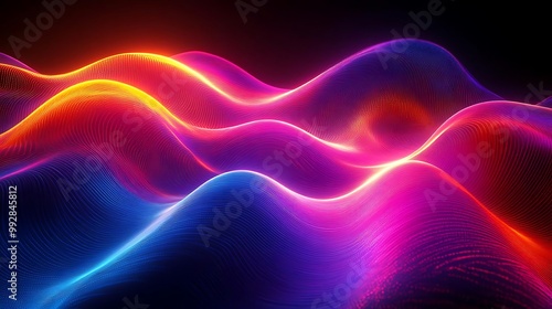 Abstract Background with Flowing Neon Waves, Purple, Blue, and Orange