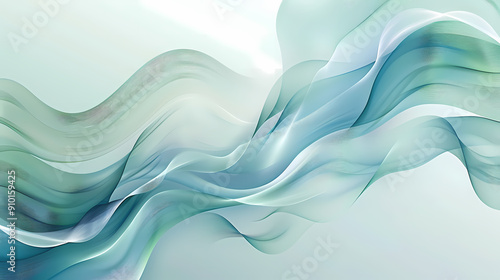 Abstract background with flowing, translucent waves in shades of turquoise and green. The waves create a sense of movement and fluidity, evoking a calming and serene atmosphere.