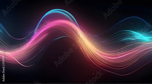 Abstract background with futuristic neon light waves. Modern background. Relaxing rhythm. Generative AI