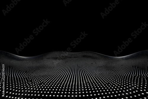 Abstract Background with Glowing Dots Forms a Wavy Surface on a Dark Backdrop