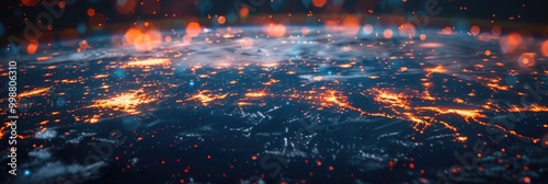 Abstract background with glowing lights and dark blue tones.