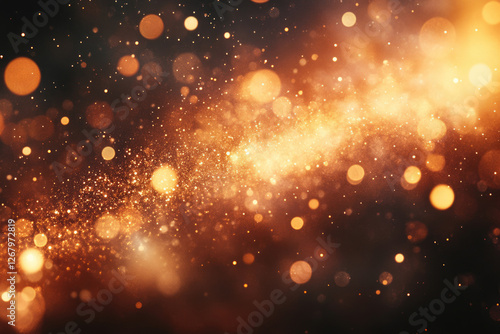 Abstract background with golden bokeh lights and sparkles, creating a magical and festive atmosphere.
