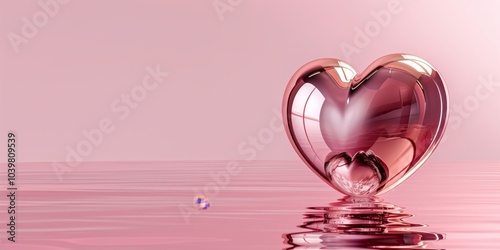 Abstract background with heart symbol and glossy surfaces with reflections, pink tones, minimalistic design.