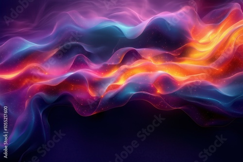 Abstract Background with Neon Waves and Sparkling Light, Creating a Cosmic Glow Atmosphere, Perfect for Technology, Graphics, and Data Visualization Projects