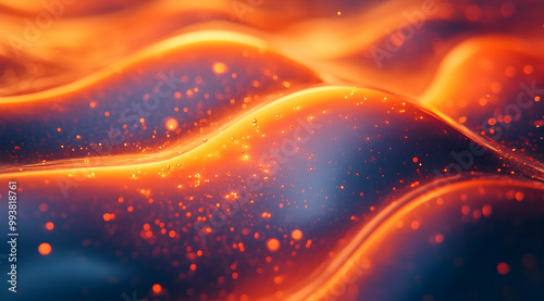 Abstract Background with Orange and Red Waves and Bokeh Lights