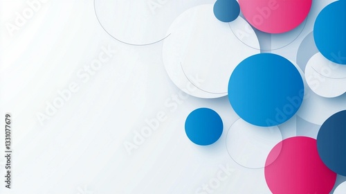 Abstract background with overlapping colorful circles in blue, pink, and white.