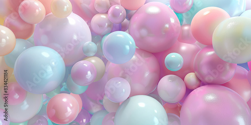 abstract background with pastel spheres and balls in different sizes and pastel colors, generative AI