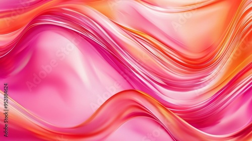 Abstract background with pink and orange waves flowing and blending, creating a sense of movement and energy. The vibrant colors and smooth curves evoke a feeling of joy and optimism
